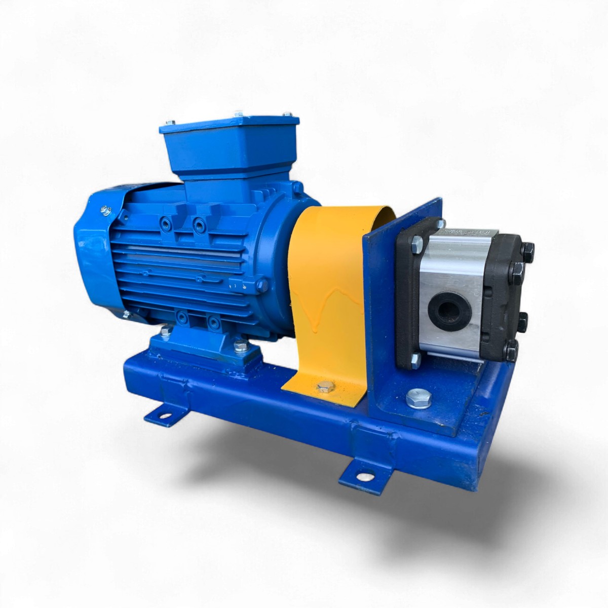 Профессиональный шестеренный насосный агрегат на базе насоса НШ-6 и электродвигателя мощностью 1,1 кВт. Установка смонтирована на надежной стальной раме (станине), что обеспечивает соосность валов, снижает вибрации и упрощает монтаж в стационарные гидросистемы.