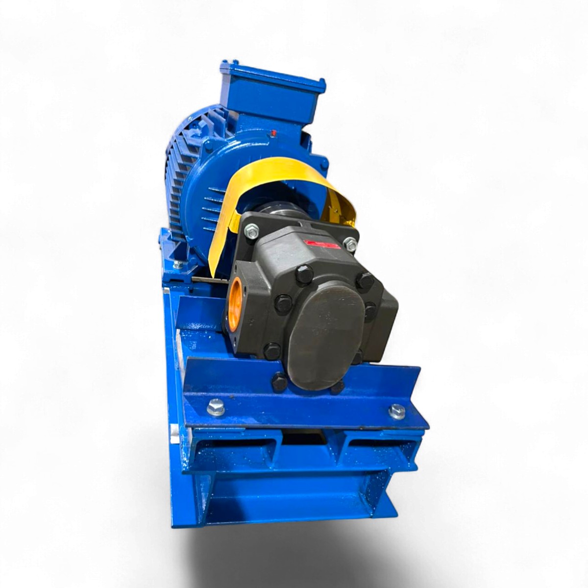 Промышленный насосный агрегат на базе шестеренного насоса НШ-250 и электродвигателя мощностью 15 кВт смонтирован на единой стальной раме (станине). Данная установка предназначена для перекачивания рабочих жидкостей в гидросистемах высокого давления, обеспечивая стабильную подачу и высокую производительность.