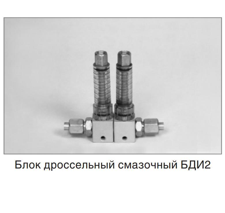 Блок дроссельный БДИ-2 — модульное устройство для отвода от напорной линии централизованной смазочной системы, регулирования и визуального контроля расхода смазочного материала, подаваемого к трущимся поверхностям механизмов и станков. Применяется для стабильного и точного распределения масла с контролем расхода и давления.