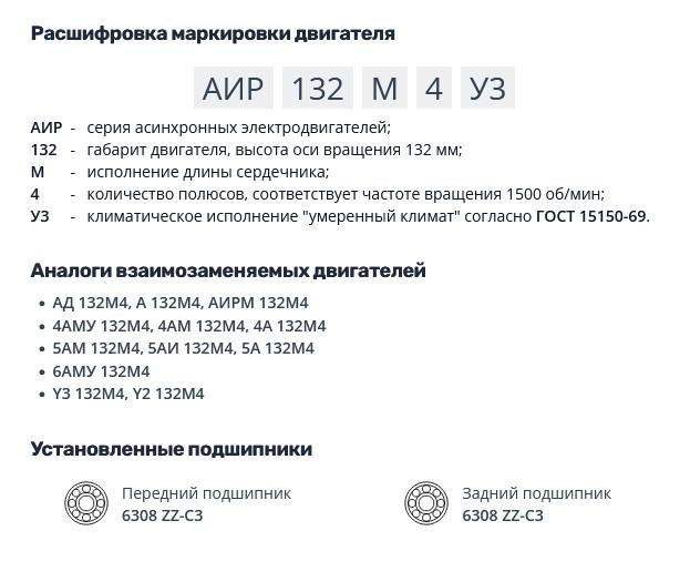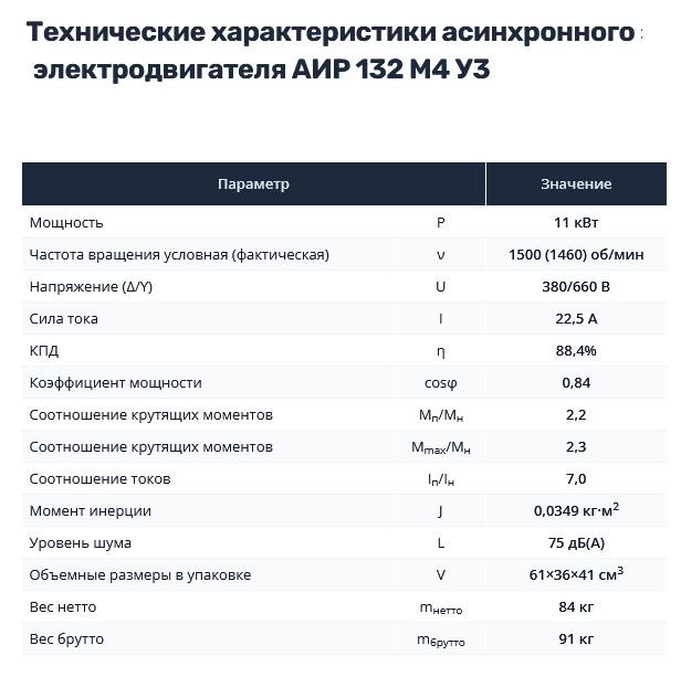 - Электродвигатель: АИР 132 М4, 11 кВт, 1500 об/мин, правого вращения, исполнение на лапах